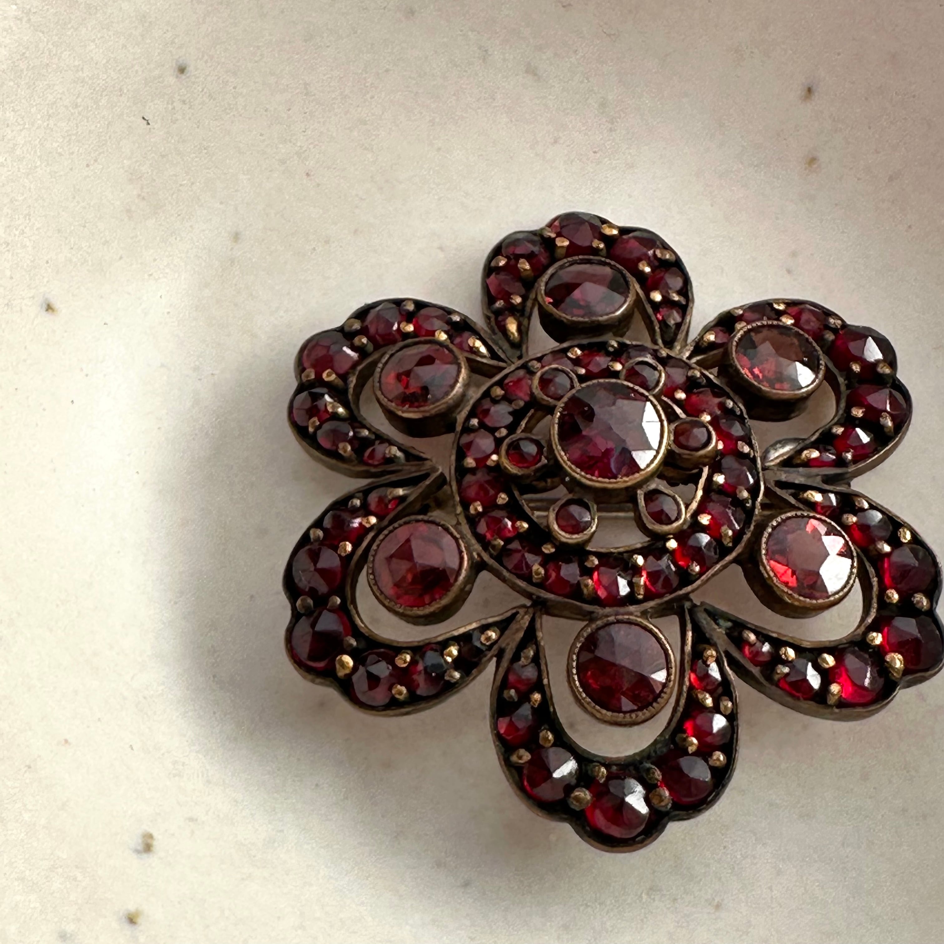 チェコで採掘される赤いボヘミアンガーネットのブローチです。
