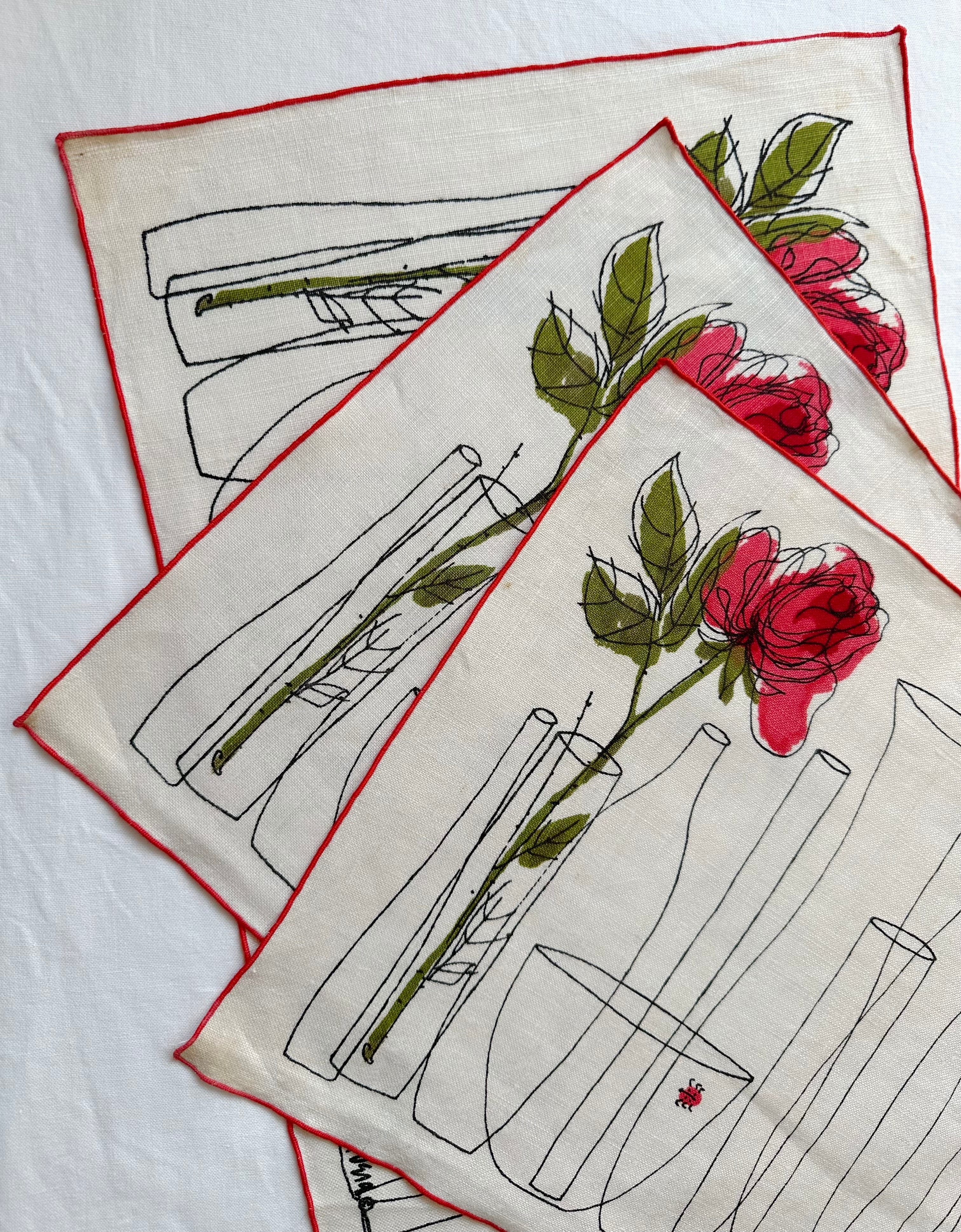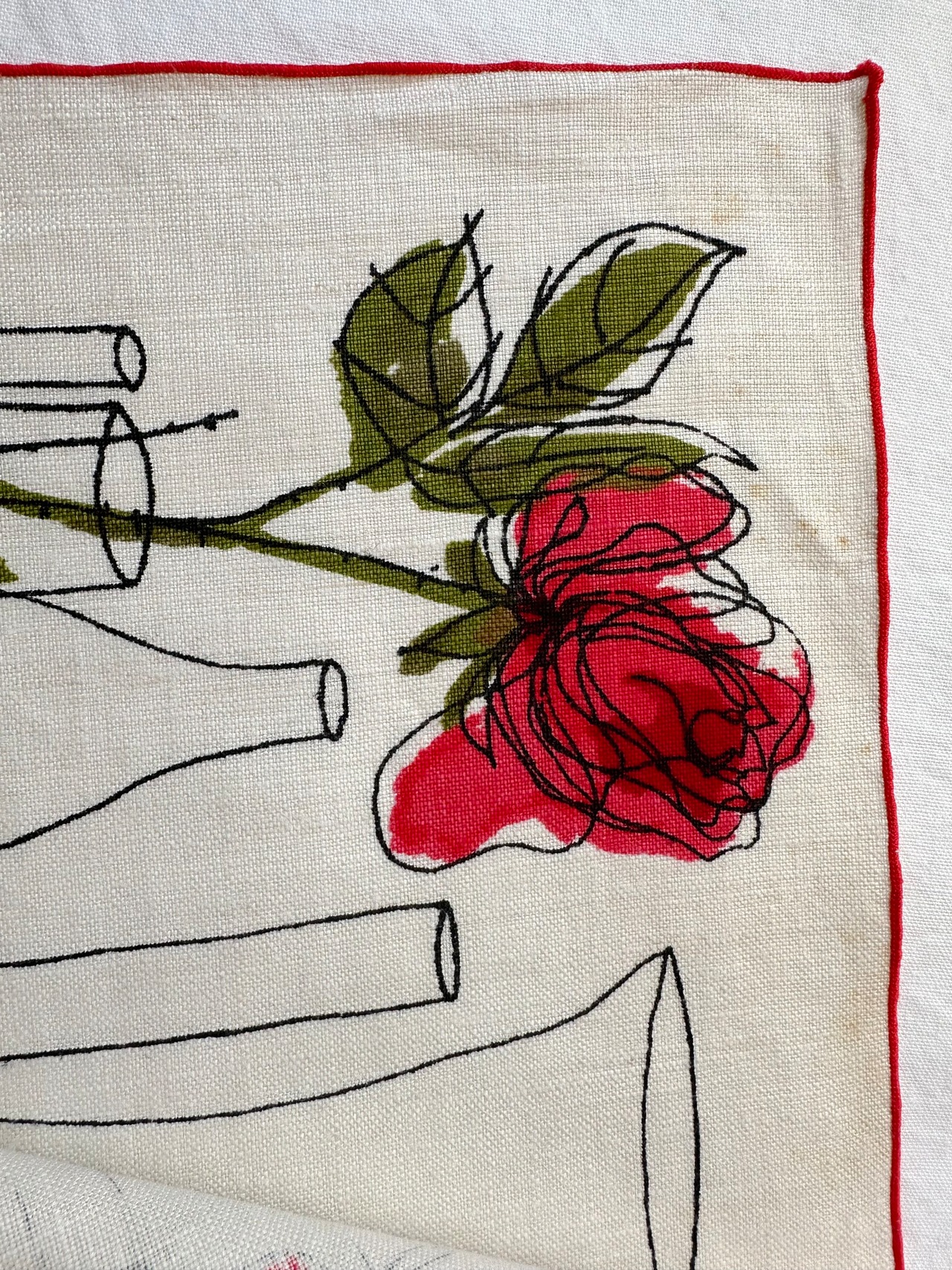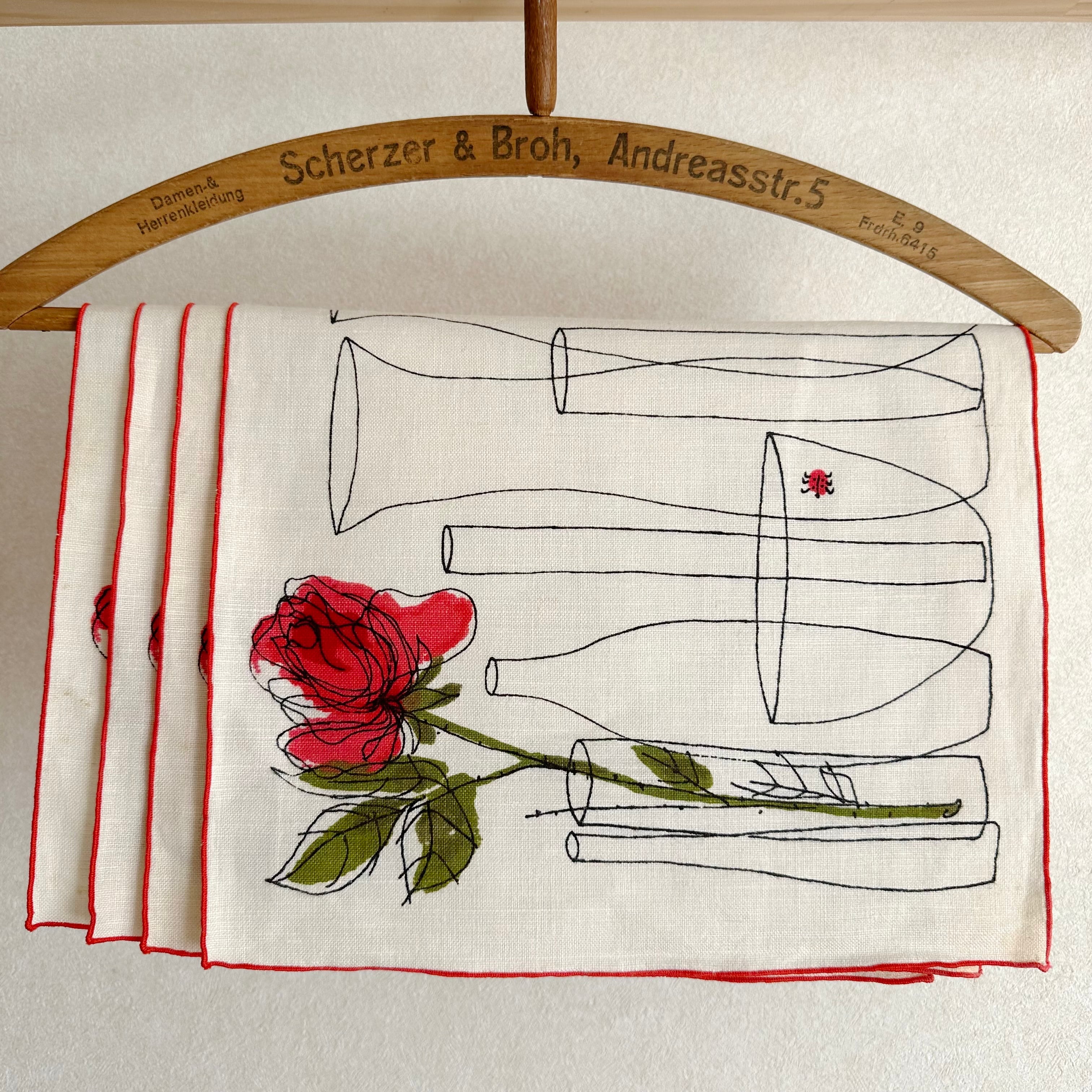 ピンクやイエローなどのカラーバリエーションがありますが、今回ご紹介するのは真っ赤なバラがアクセントになった花瓶のプレースマットの4枚セットです。