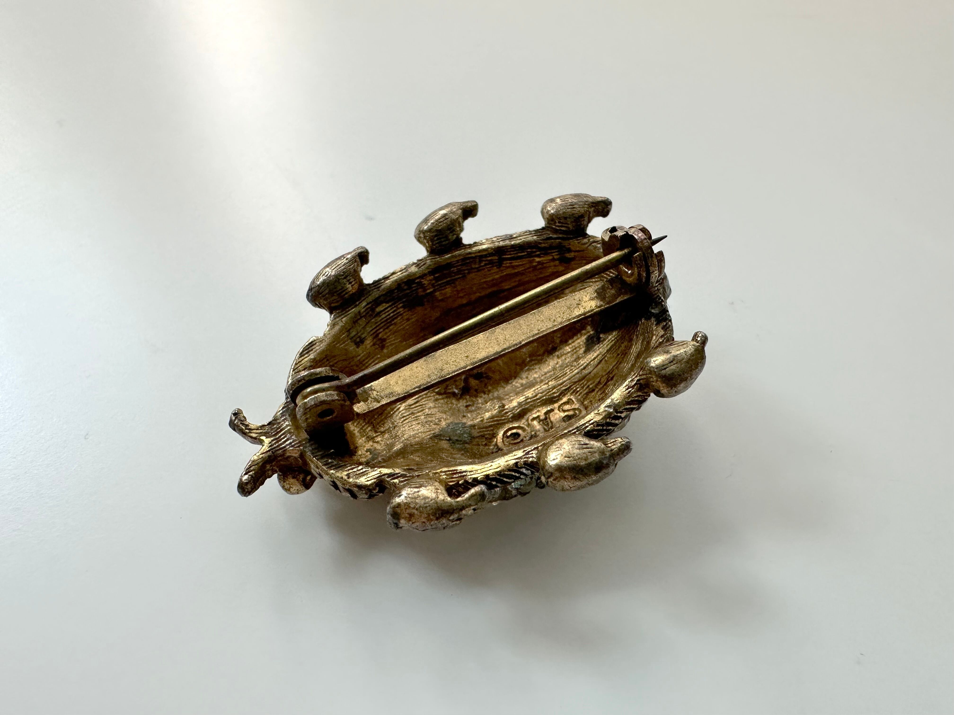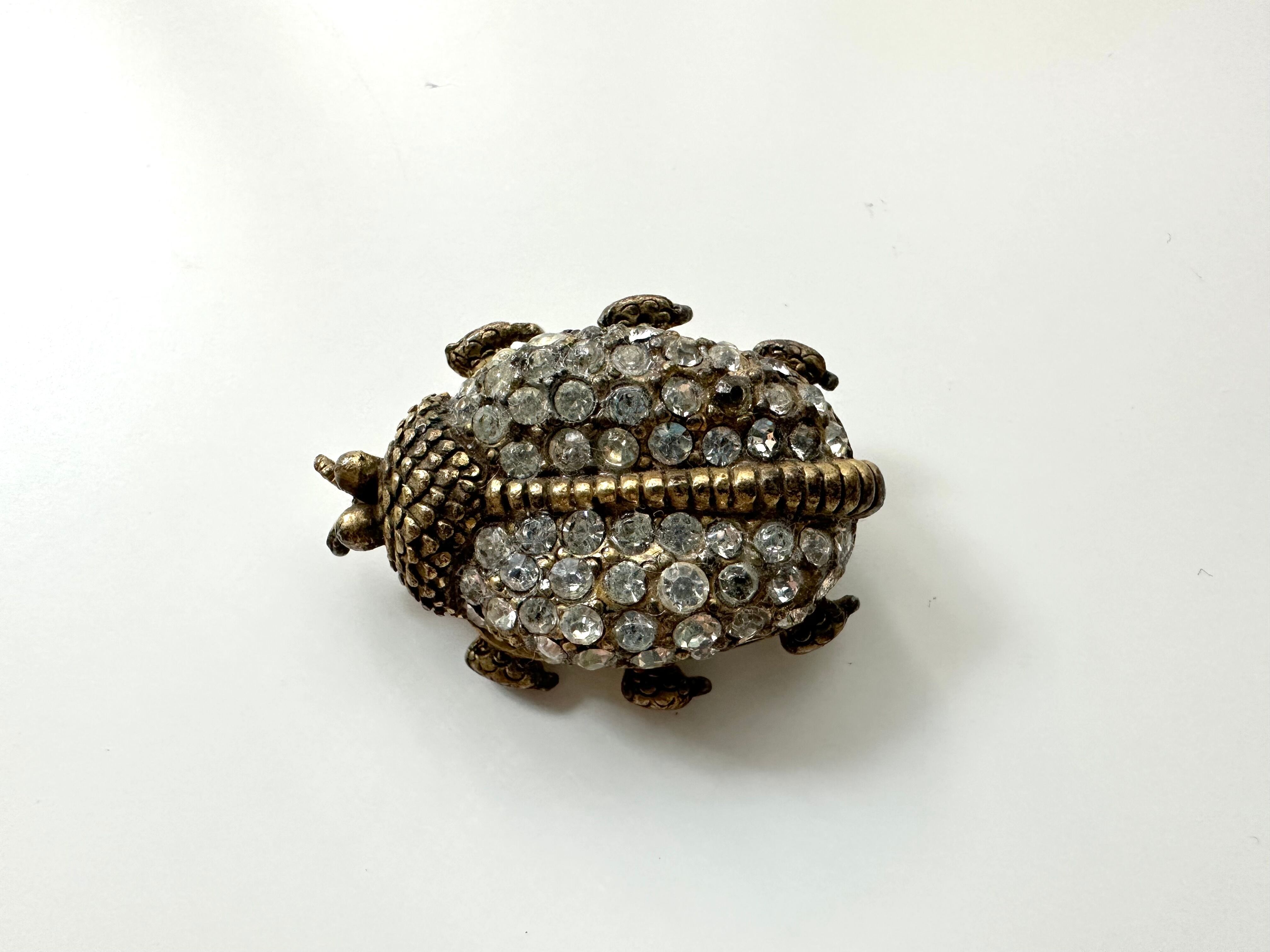 ラインストーンがびっしりとはめ込まれた存在感のあるてんとう虫のブローチ。